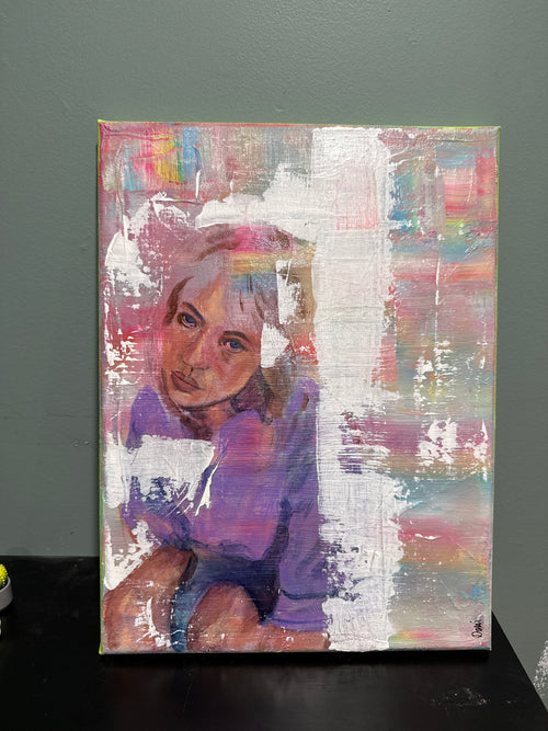 There’s something deeply disarming about being fully perceived without performing for it. Seen Without Asking captures that raw, unfinished moment—where identity is still forming, but truth is already present. The exposed underlayers and textured interruptions aren’t mistakes—they’re the point. They mirror the experience of being witnessed before you’ve had the chance to edit yourself. Soft purples and muted skin tones contrast with stark white space, creating a push-pull between exposure and protection. This piece is for anyone who’s ever been understood a little too quickly—and didn’t know whether to run or stay.